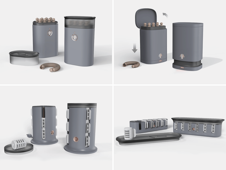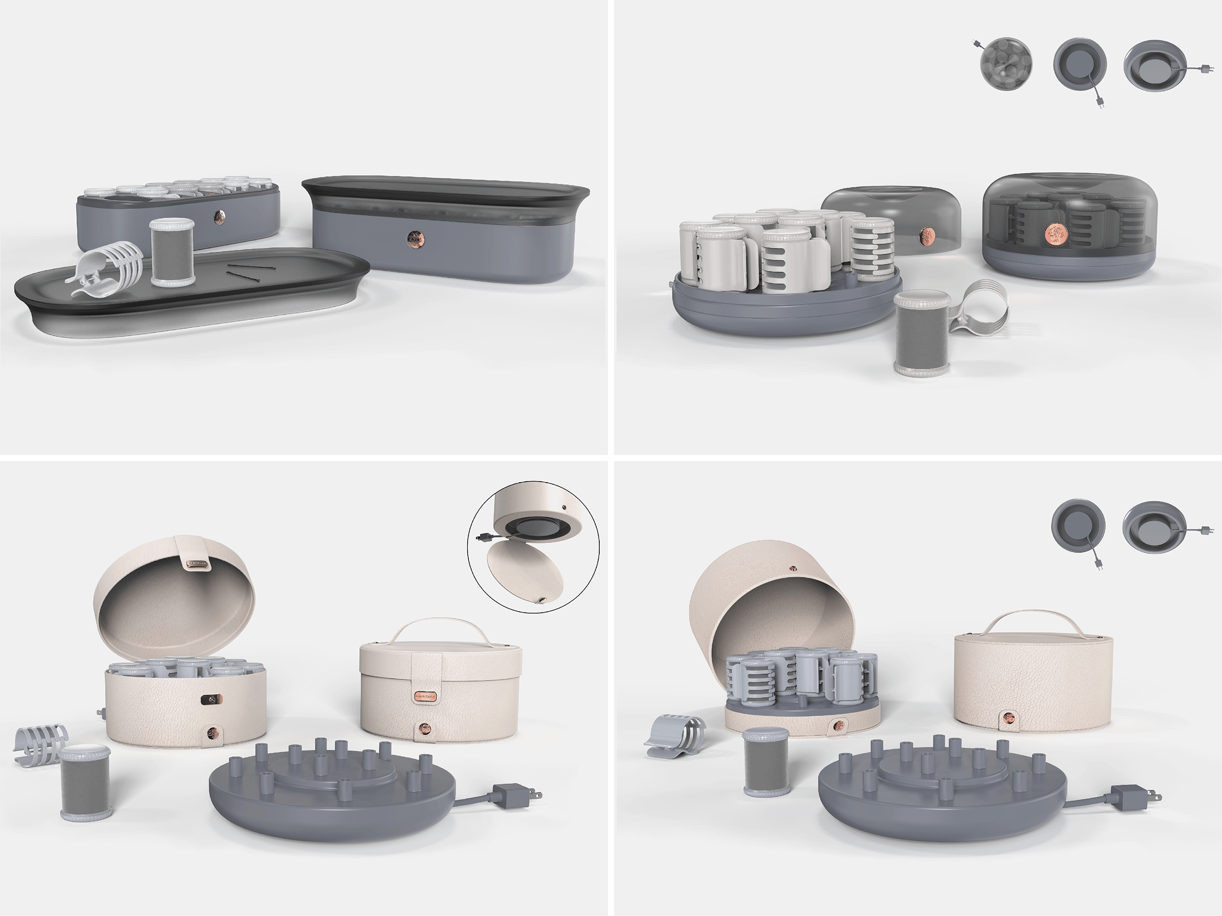 Envision an elevated case for hot rollers that: serves as sleek storage, is easy to carry and has a simple yet chic aesthetic